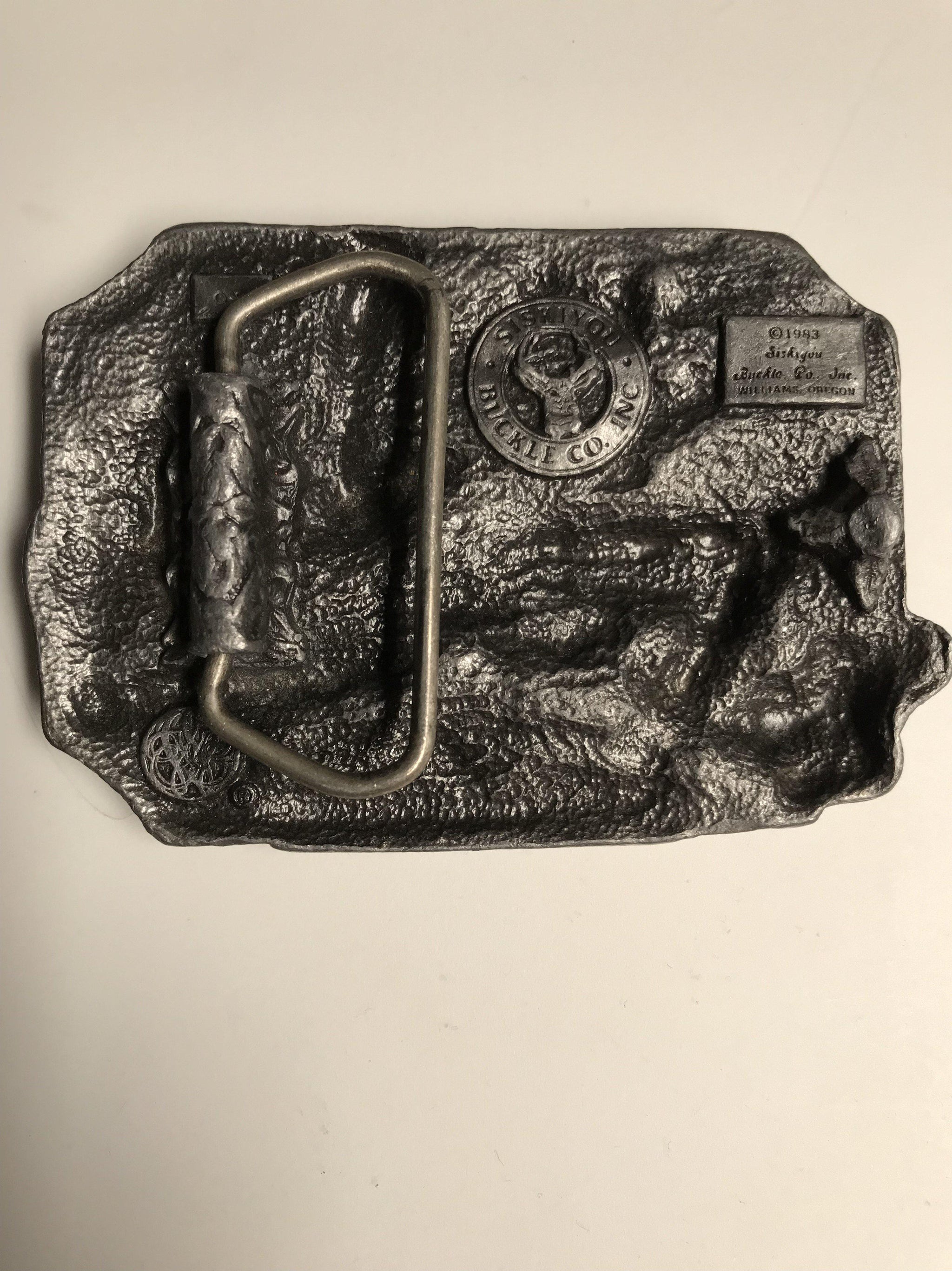 Colorful red and green highlight in this farm buckle. Look closely to see a tractor, barn, silo, and more in the rustic buckle. Made by SISKIYOU Buckle Co. Inc. in Oregon, USA